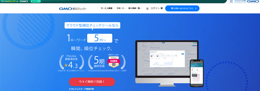 GMO順位チェッカーは、有料で利用できるクラウド型の検索順位チェックツールです。