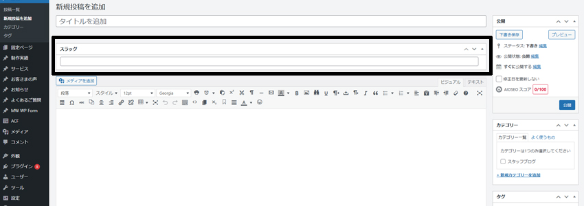 例えば、aboutやcontactなど、短く簡潔なスラッグにすると、SEOやユーザビリティの面で有利になります。URLを適切に設定することで、検索エンジンにも認識されやすくなり、ユーザーにとっても分かりやすいサイト構造を作ることができます。
